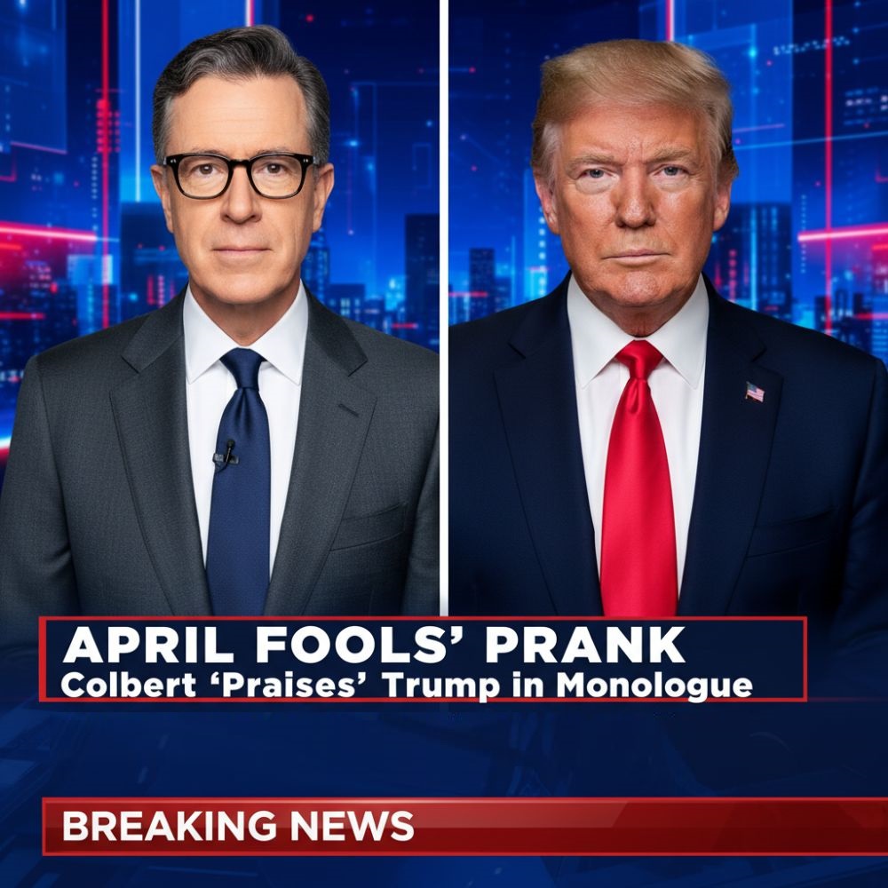 “April Fools’!” Colbert said, then sounding more like himself.