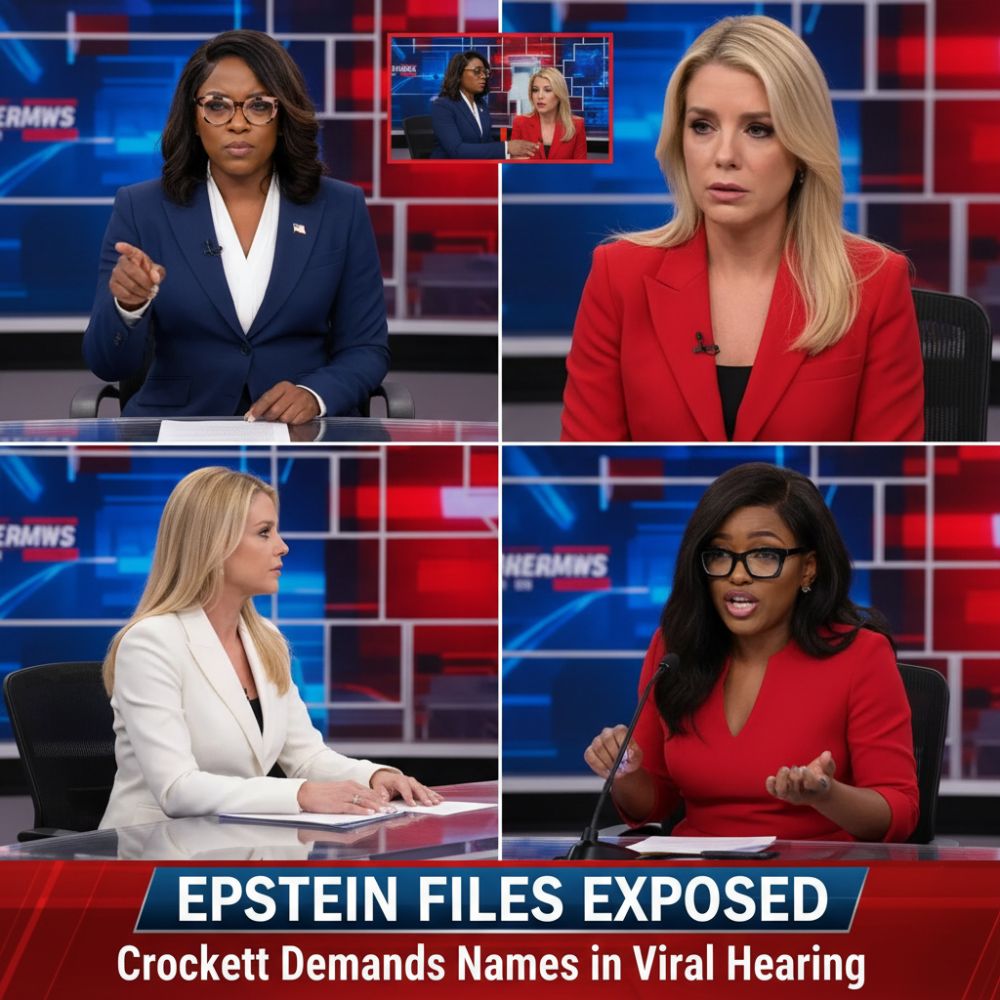 The cringe-worthy moment unfolded when Crockett held up documents and calmly stated that new evidence from the Epstein files reveals a hidden client list containing powerful names — including individuals closely connected to the Trump orbit. She directly asked Bondi why these names remain redacted and protected while the DOJ claims to be pursuing justice for the victims.