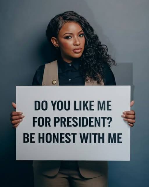 Unlike carefully staged campaign rollouts, this fictional moment imagines a candidacy powered by momentum rather than machinery. The appeal isn’t inevitability; it’s urgency. Not legacy, but confrontation.